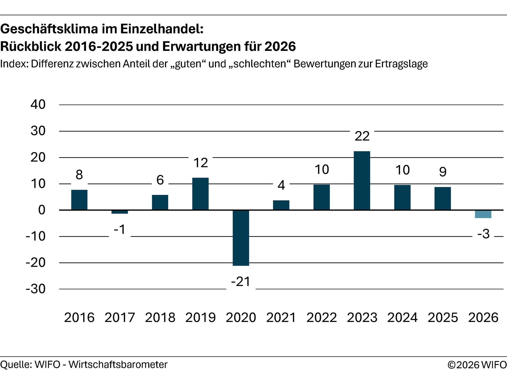 Einzelhandel unterscheidet sich das Geschäftsklima zwischen den einzelnen Branchen stärker. Fast alle Betreiber von Minimärkten, Supermärkten und Kaufhäusern bewerten das Geschäftsjahr 2025 positiv und viele melden ein Wachstum bei Umsatz und Investitionen. Im Fachhandel für Lebensmittel hingegen variieren die Einschätzungen zur Ertragslage zwischen den einzelnen Unternehmen: Ein Drittel der Befragten bewertet sie als schlecht, während ein Viertel sie als gut einstuft. Im Wanderhandel sowie im Kosmetik- und Pharmabereich fallen die Einschätzungen zum Geschäftsjahr 2025 insgesamt verhalten aus, wobei etwa ein Fünftel der Unternehmen eine schlechte Rentabilität beklagt. Die Erwartungen der Kaufleute bezüglich 2026 sind vorsichtig positiv, trotz der Befürchtungen eines Nachfragerückgangs aufgrund der möglicherweise anhaltenden Energiekrise.