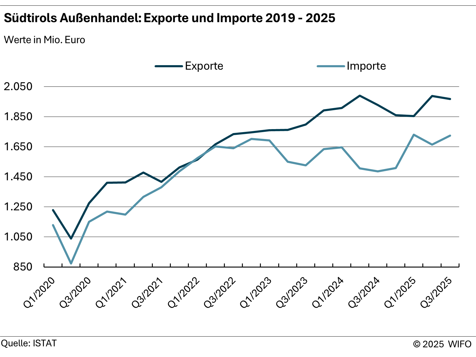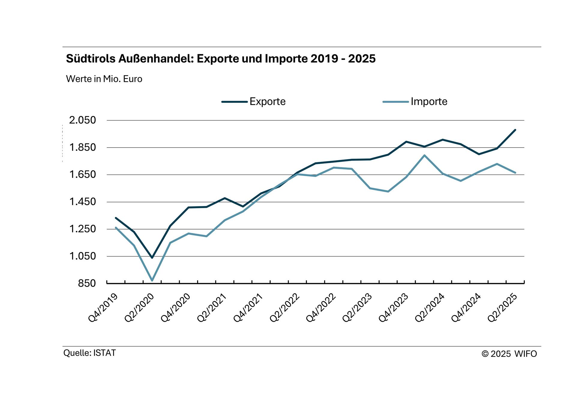 Viermal im Jahr veröffentlicht das WIFO die Statistiken zu den Exporten und Importen, getrennt nach Ländern und Produkten. Außerdem wird die Entwicklung der Südtiroler Exporte mit jener unserer Nachbarregionen verglichen.