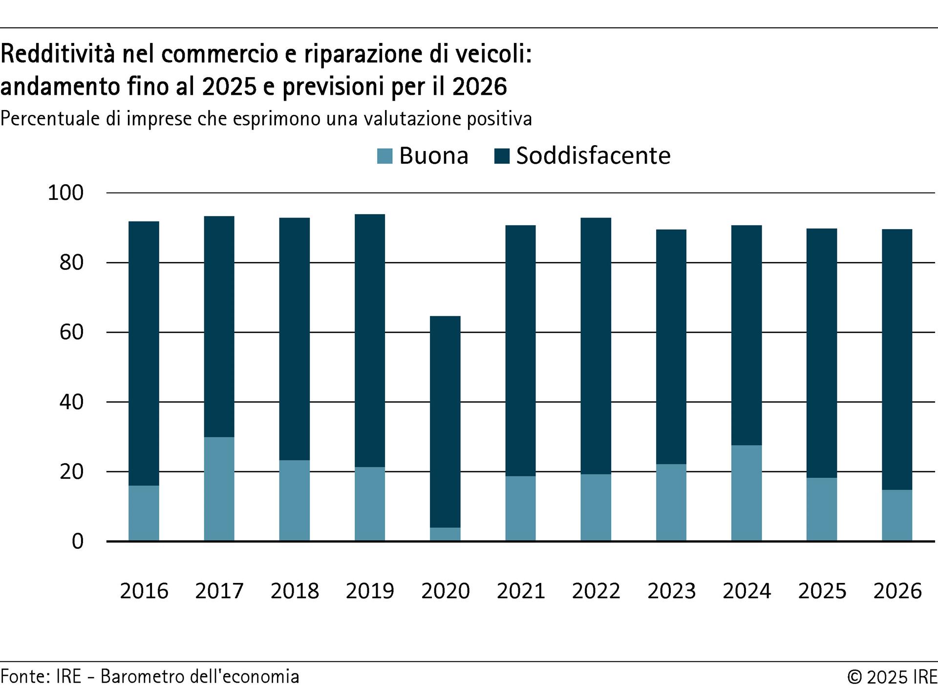 commercio e della riparazione di veicoli conferma per quest’anno una contrazione dei fatturati e degli investimenti, in particolare tra le imprese di maggiori dimensioni. La redditività risulta comunque soddisfacente per quasi il 90 percento delle aziende, anche grazie all’aumento dei prezzi di vendita che ha permesso di far fronte all’incremento dei costi. Le imprese non attendono un significativo cambiamento della situazione nei prossimi mesi.