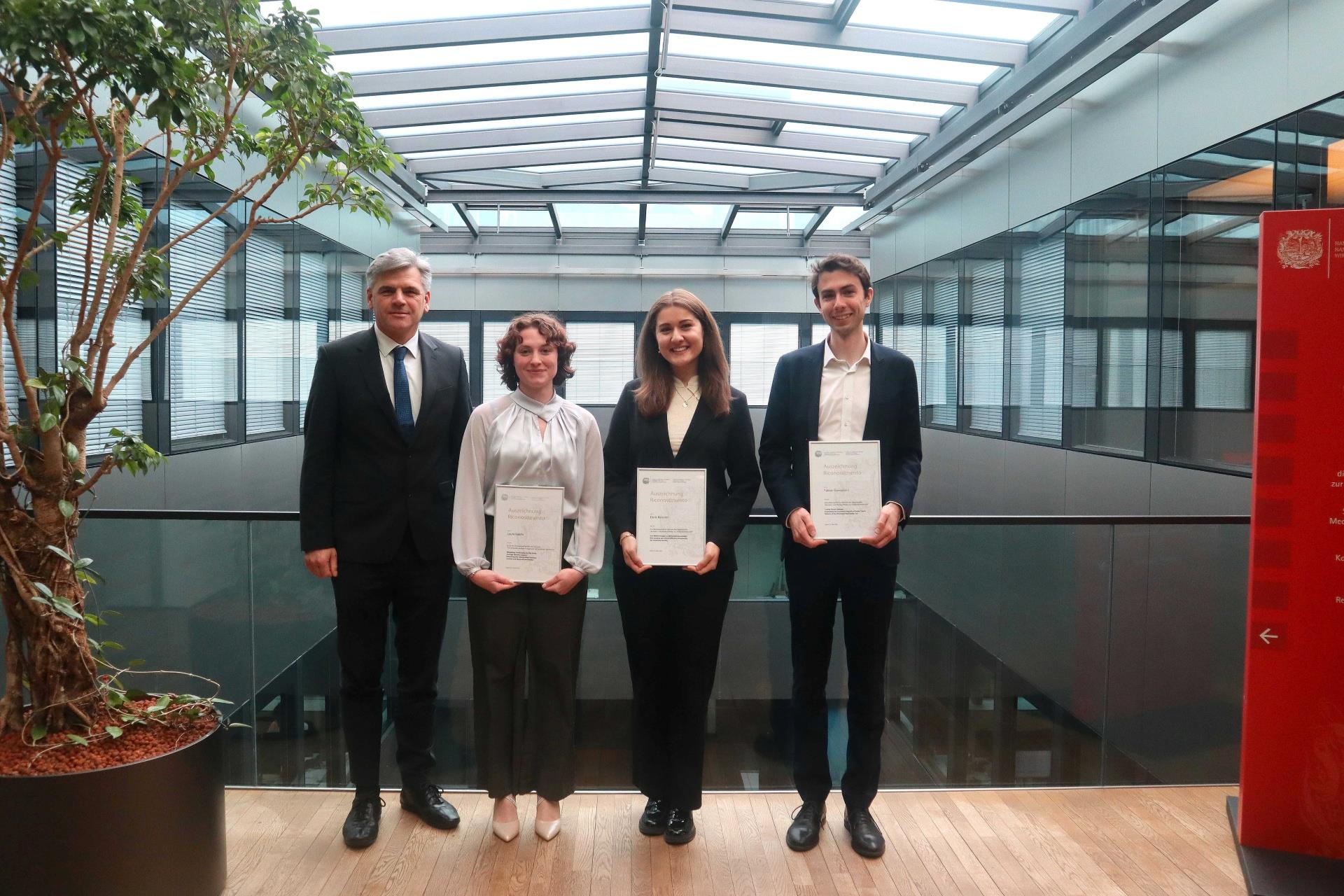 Nell’immagine da sinistra: Il Direttore dell’IRE Georg Lun con le vincitrici Laura Baldin, Doris Reiserer e il vincitore Fabian Giovannini.